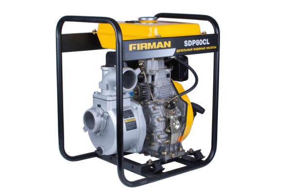 Мотопомпа FIRMAN SDP80CL, дизельная, для чистой и слабозагрязненной воды, высота подъема/всасывания 31/8 м, производительность 60 м.куб/ч, вх/вых диаметр 80 мм (3"), ручной пуск